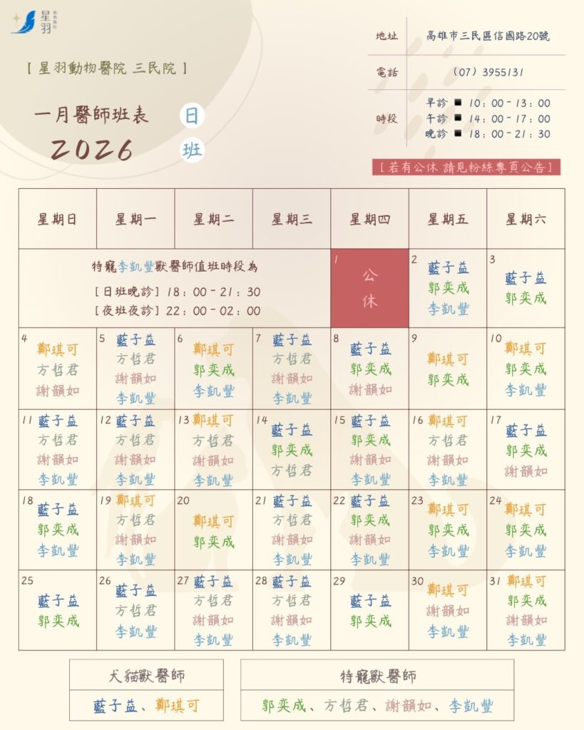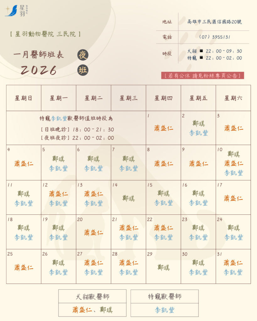 ⠀ ⠀ 特寵夜診時段為𝟮𝟮:𝟬𝟬-𝟬𝟮:𝟬𝟬
