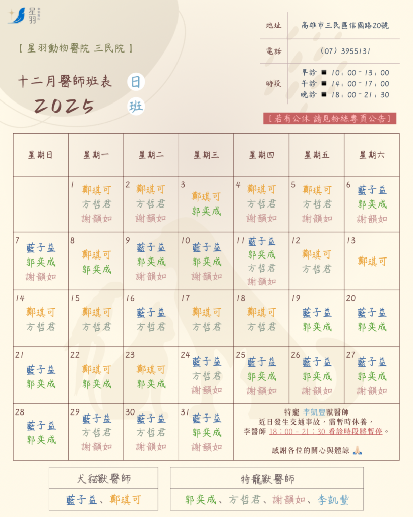 李凱豐獸醫師近日發生交通事故,需暫時休養,