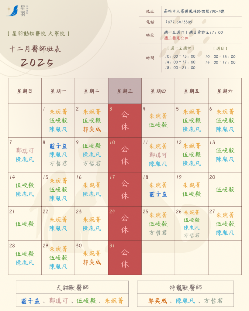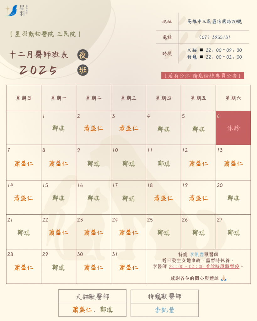 ⠀ ⠀ 特寵夜診時段為𝟮𝟮:𝟬𝟬-𝟬𝟮:𝟬𝟬